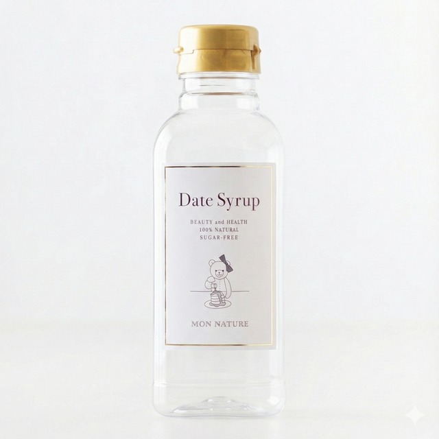 2,400gデーツシロップの詰め替え容器として お使いください 400gのデーツシロップが入ります キッチンに置いていても かわいいくまちゃんラベル 液ダレしないキャップで使いやすい ※食品表示は付属しておりません